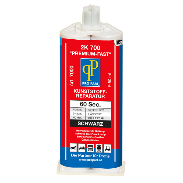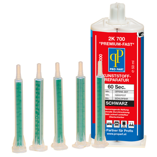 2K Kunststoff Reparatur 2K 700 wurde speziell für eine schnelle Reparatur und Verklebung von fast allen modernen Kunststoffteilen entwickelt. 2K 700 hat eine ausgezeichnete Haftung, trocknet sehr schnell und ist ausgezeichnet schleifbar.