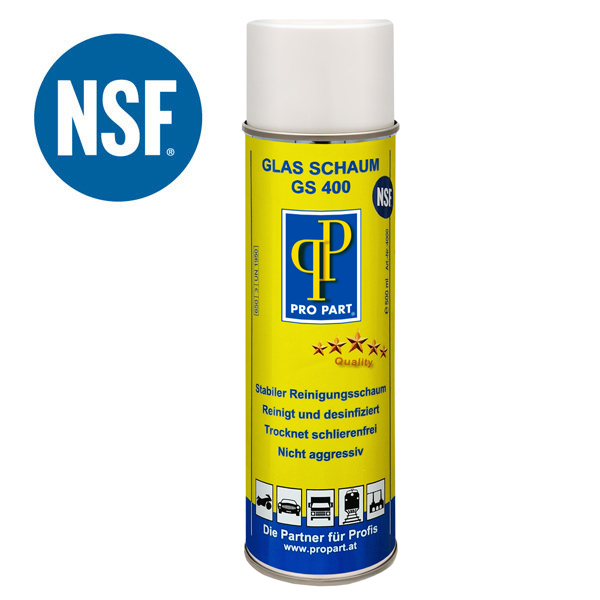 Glas Schaum GS 400 ist ein sehr kräftiger Reiniger auf Schaumbasis für alle glatten Oberflächen. Der stabile Reinigungsschaum sorgt für ein sauberes und von Schlieren freies Reinigungsergebnis. GS 400 besitzt durch die Beimengung von Butoxyethanol und Propanol eine hochwirksame hygienische Reinigungskraft für die verschiedensten Oberflächen.